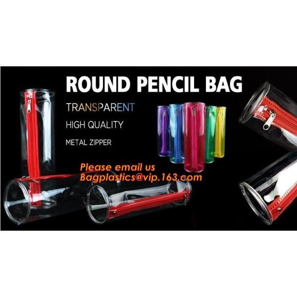 Custom fashion transparent plastic clear round standing pvc zipper pencil case for school boys Images |